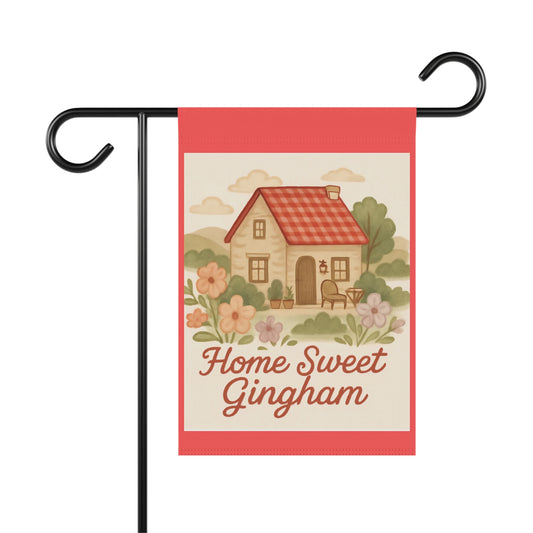 Home Sweet Gingham Garden Banner | Charming Outdoor Decor, Housewarming Gift, Floral Yard Sign, Spring Decoration, Cottage Style Banner
