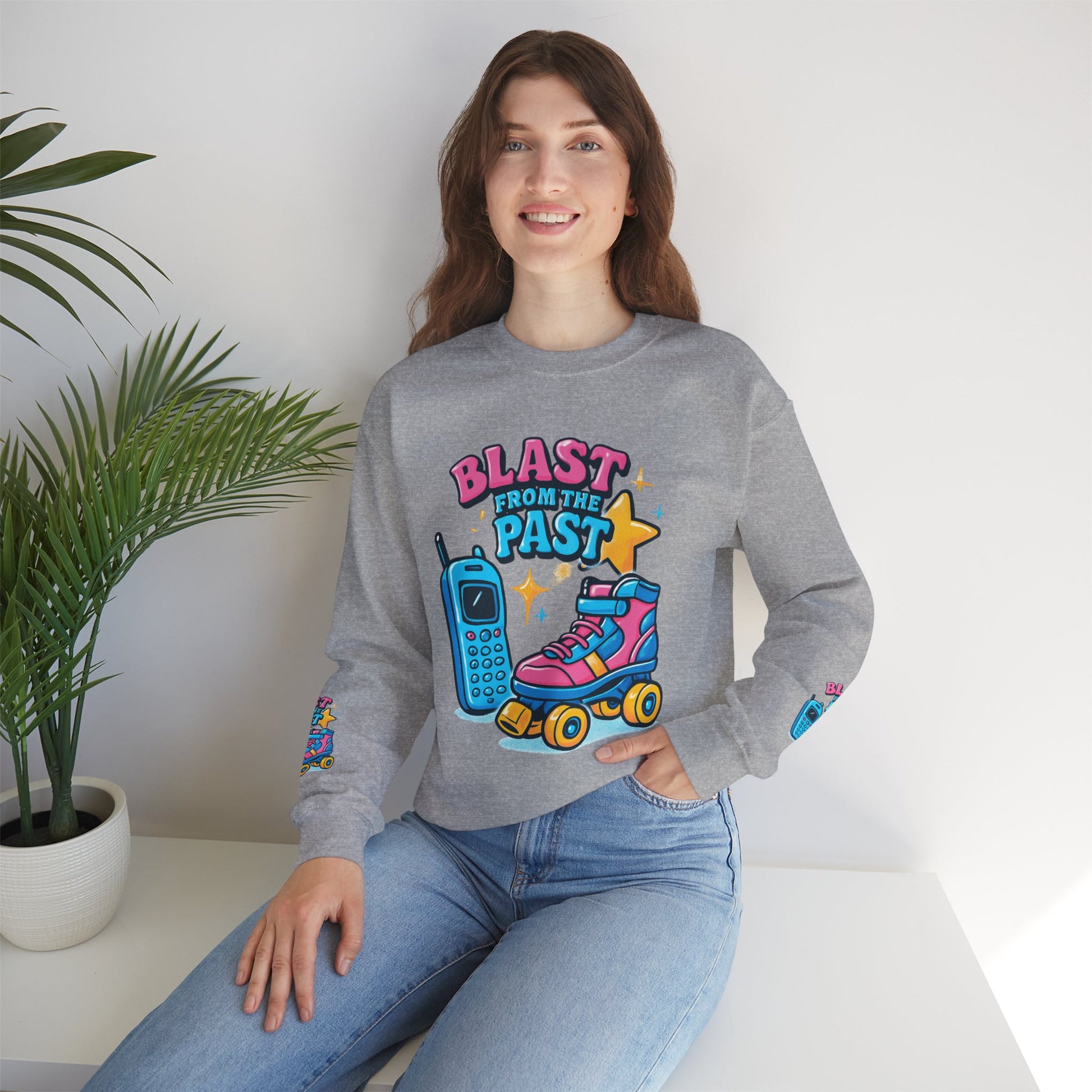 A vibrant retro roller skates and Cordless Phones design brings a blast from the past with a nostalgic 80's vibe. This Heavy Blend™ Crewneck Sweatshirt is perfect for adults looking for comfort and durability. Ideal for 80's enthusiasts and those who love retro aesthetics. Great for casual wear, 80's themed parties, and throwback events.