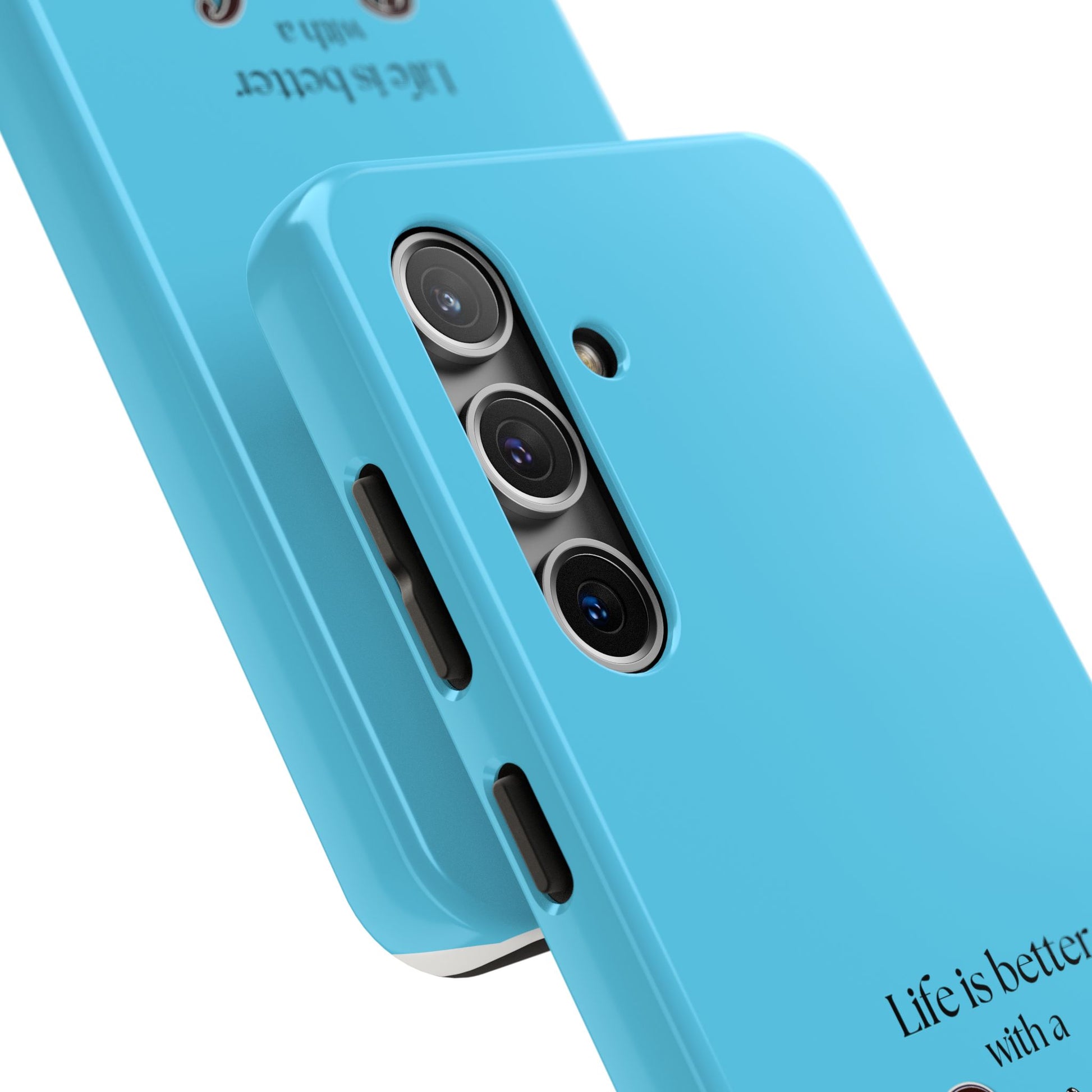 Protect your phone in style with our Tough Phone Cases. Designed for those who love their devices as much as their pets, these cases exude a vibrant, playful vibe. The glossy finish makes your phone pop, while the striking design serves as a reminder that 'Life is better with a Dog.' Perfect for dog lovers, this case is not just functional but also a statement piece. Ideal for everyday use, it’s perfect for holidays like National Dog Day or simply as a unique gift for friends and family who cherish their furry companions. Bring some joy to your life and protect your phone with a case that resonates!