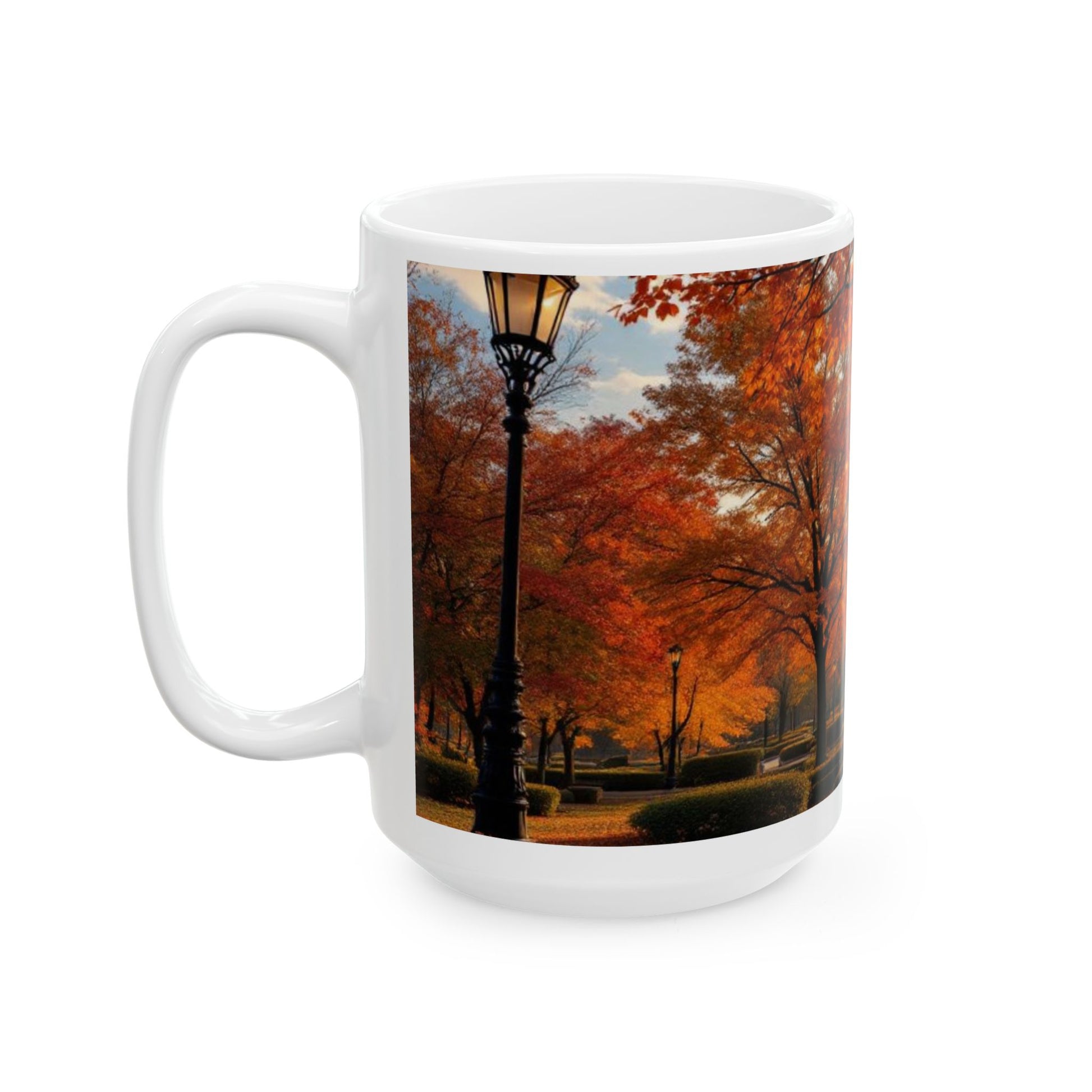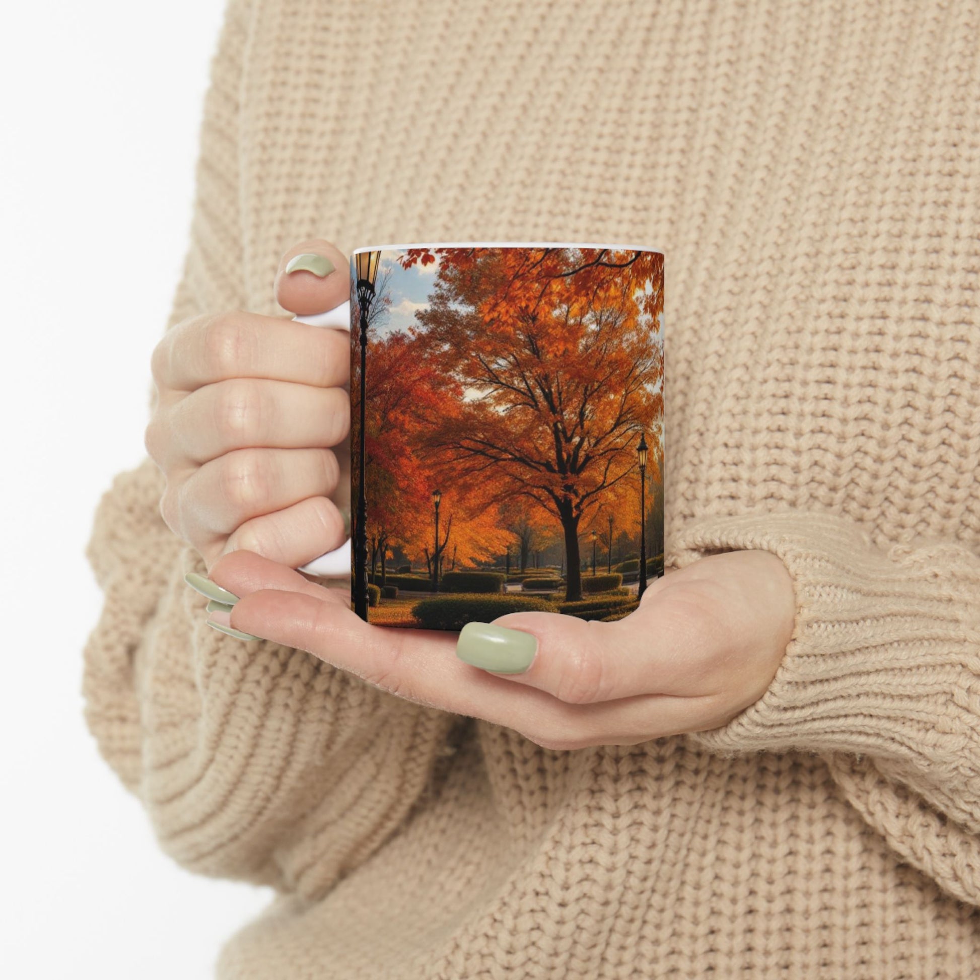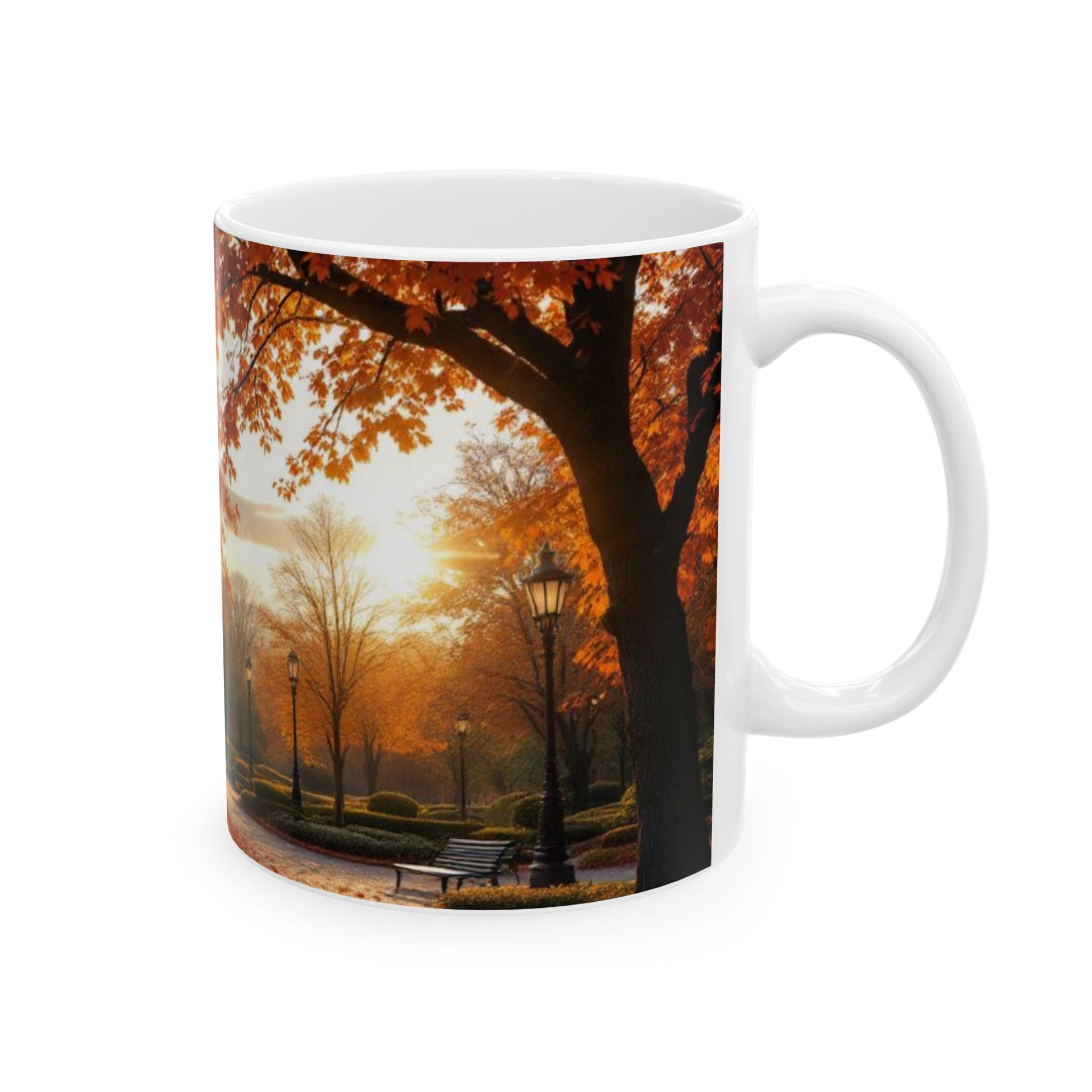 Enjoy your favorite hot beverages in this Fall Scene Mug, featuring vibrant colors and a glossy finish. Perfect for cozy autumn mornings and evenings, this mug is suitable for both microwave and dishwasher use. A great gift for nature lovers and those who appreciate the beauty of fall.