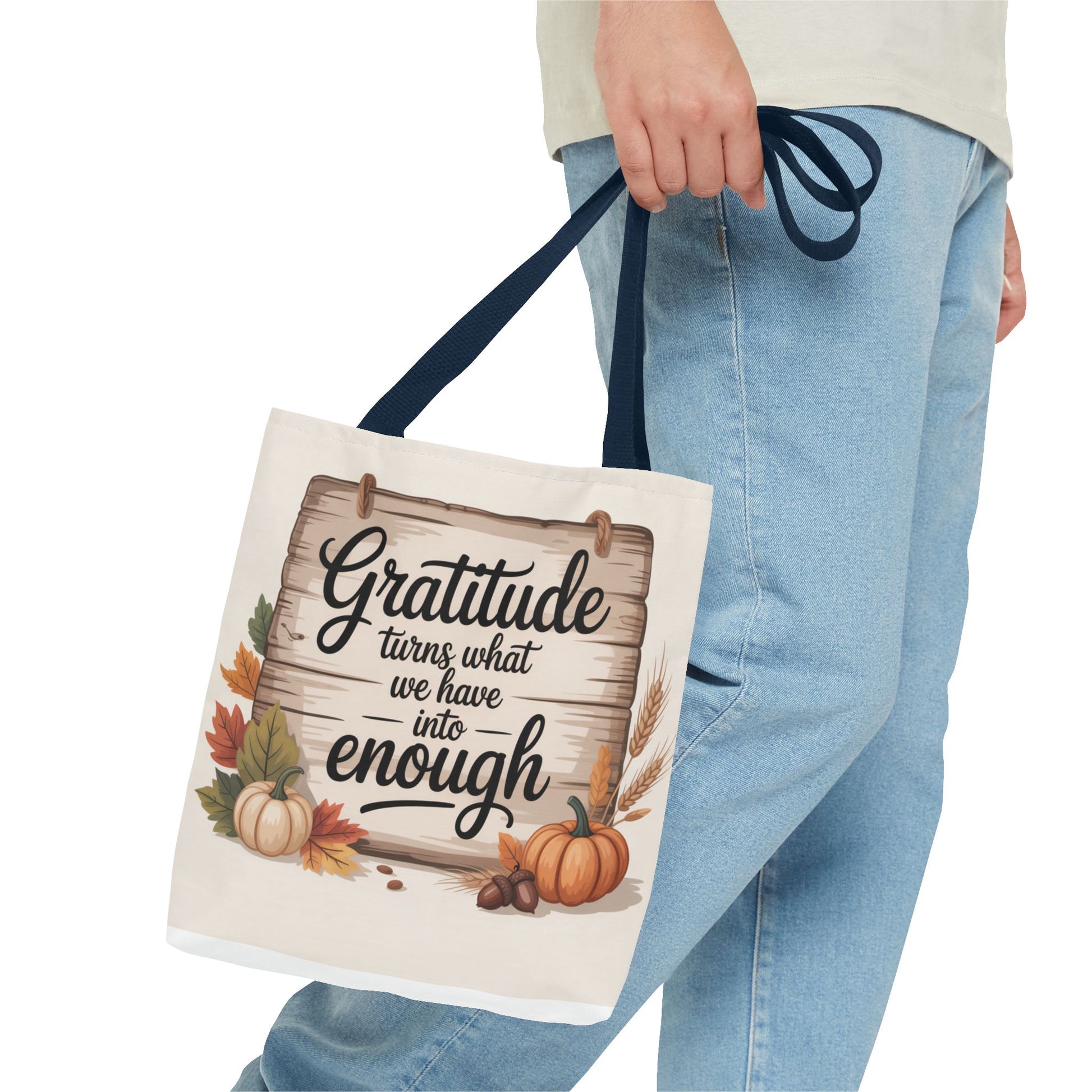 Gratitude Fall Tote Bag, Perfect for Thanksgiving, Eco-Friendly Shopping, Autumn Decor, Gift for Her