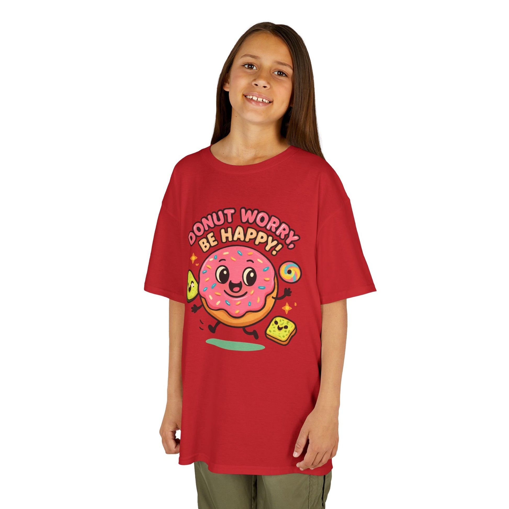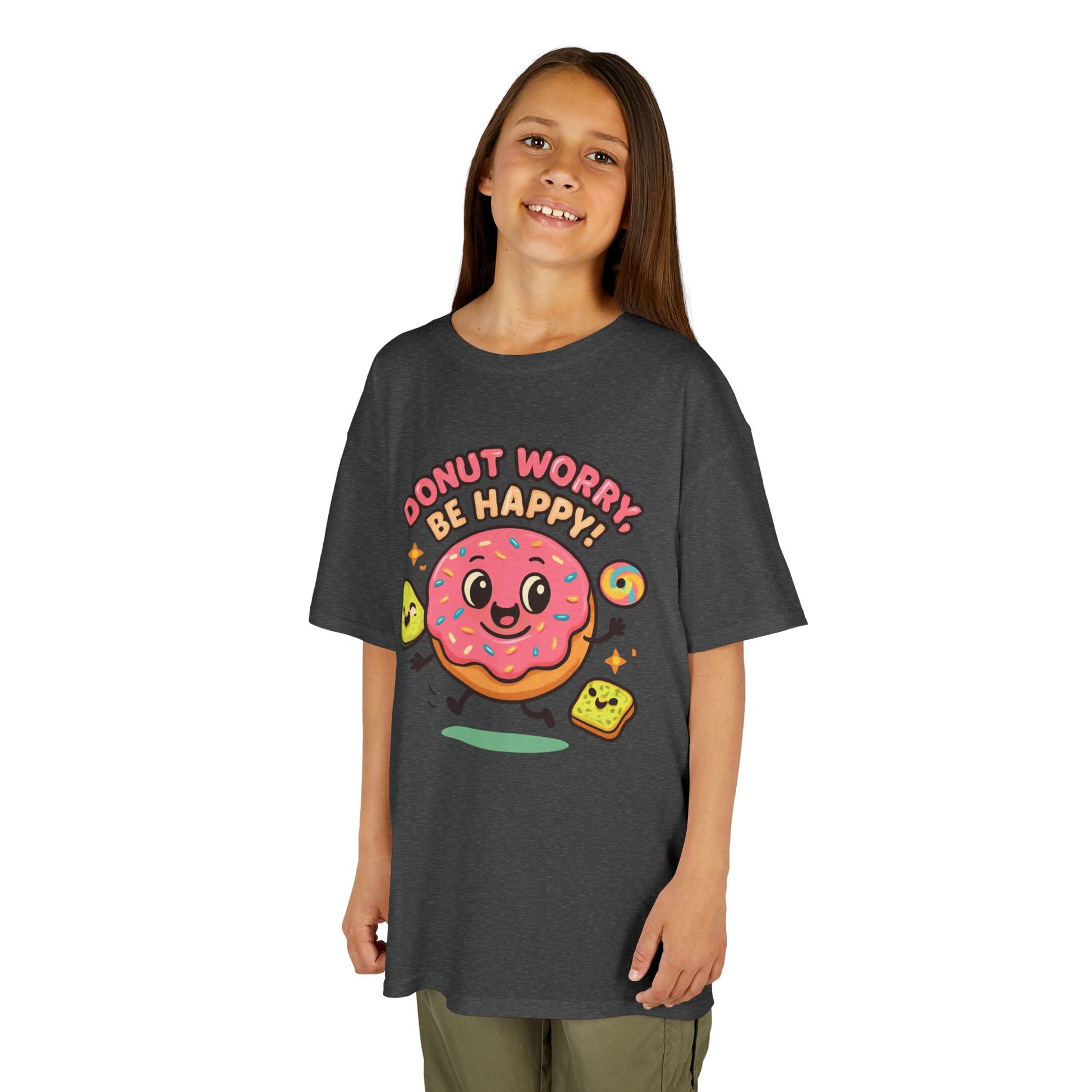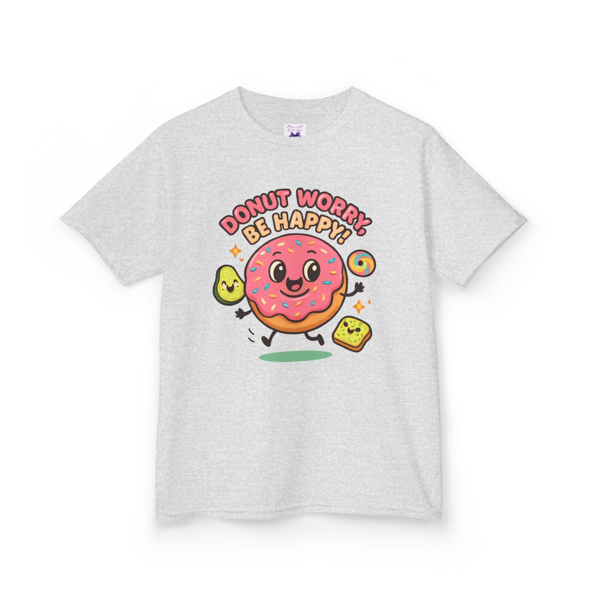Brighten up your child’s wardrobe with this delightful Kids Heavy Cotton™ Tee. With its cheerful ‘Donut Worry, Be Happy’ design, this t-shirt is perfect for instilling positivity and fun into everyday activities. Crafted for comfort, it's an ideal choice for playdates, birthday parties, or casual outings. The soft cotton fabric makes it a cozy fit that kids will love to wear throughout the year. Parents will appreciate its durability and the ease of care, making it a practical addition to any child's outfit. It's a delightful gift for birthdays or holidays, bringing joy and smiles all year round.