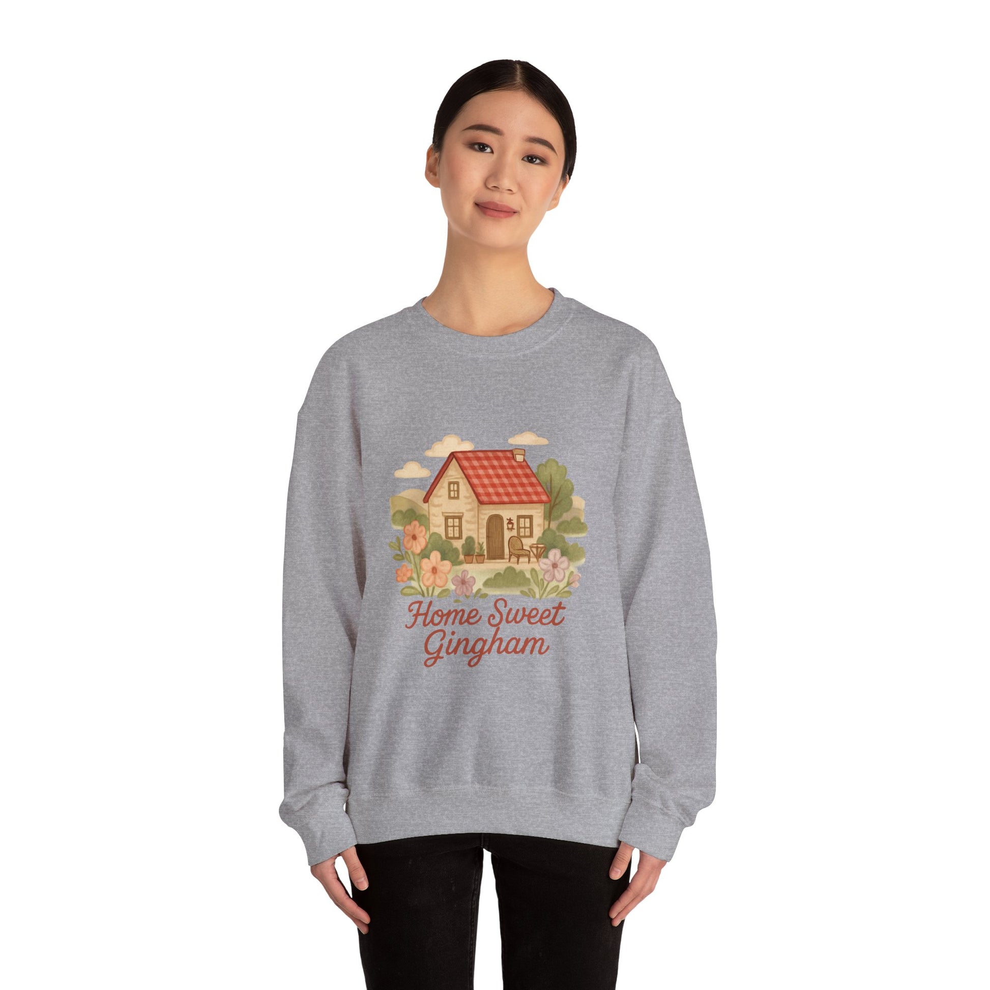 Cozy English cottage design on a warm unisex heavy blend crewneck sweatshirt. Perfect for staying snug and stylish during the colder months. Ideal for adults looking for a comfortable and durable sweatshirt. Great for gifting during the holiday season or cozy nights at home.