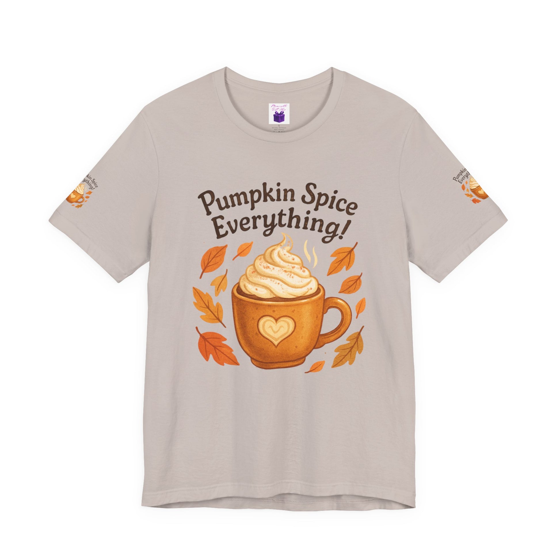 Stay cozy and festive with this Pumpkin Spice T-Shirt. Perfect for pumpkin spice lovers and fall enthusiasts, this tee is a comfy addition to your seasonal wardrobe. Great for casual outings, pumpkin patch visits, Thanksgiving, and Halloween celebrations.